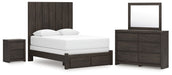 Fraluna Queen Panel Storage Bed with Mirrored Dresser and Nightstand