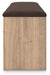 | Details | Made with engineered wood (MDF/particleboard/plywood) and decorative laminate for the right balance of affordability and durability, Warm finish with a replicated oak grain and authentic touch, Decorative laminate replicates natural or man-made material surfaces with consistent color, pattern and texture, Polyester upholstery, Hardware with bronze-tone finish, 2 smooth-gliding drawers, Drawer interiors are lined with a faux linen laminate for a clean, finished look, Minor assembly required | |