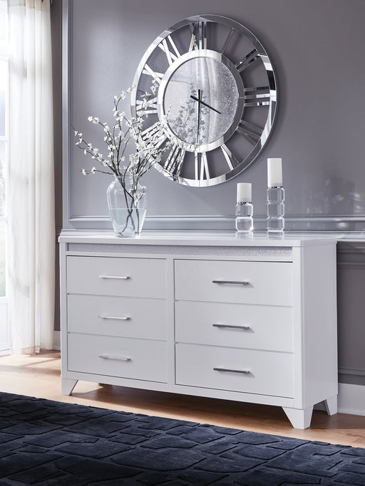Signature Design by Ashley®If glitz and glam are your jam, you’re gonna love this dresser. Dazzling chrome-tone touches wow against a sophisticated matte white finish for a p...