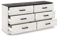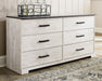 | Details | Made with engineered wood (MDF/particleboard/plywood) and decorative laminate for the right balance of affordability and durability, Whitewash replicated worn through paint, Top with rustic gray planked replicated oak grain with authentic touch, Pewter-tone pulls, 6 smooth-gliding drawers, Vinyl wrapped drawer sides and back for extra durability, Safety is a top priority, clothing storage units are designed to meet the most current standard for stability, ASTM F 2057 (ASTM International), Drawers extend out to accommodate maximum access to drawer interior while maintaining safety, Assembly required | |