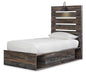Details B211-46: Made of engineered wood (MDF/particleboard) and decorative laminate, Brown rustic finish with burnt orange and teal accents in a replicated wood grain with authentic touch, Large-scale hardware with dark finish, 5 smooth-gliding drawers, Drawer interiors are lined with a faux linen laminate for a clean, finished look, Includes tipover restraint device, Small Space Solution, Safety is a top priority, clothing storage units are designed to meet the most current standard for stability, ASTM F 2057 (ASTM International), Drawers extend out to accommodate maximum access to drawer interior while maintaining safety, B211-92: Made of engineered wood (MDF/particleboard) and decorative laminate, Brown rustic finish with burnt orange and teal accents in a replicated wood grain with authentic touch, 2 smooth-gliding drawers, Drawer interiors are lined with a faux linen laminate for a clean, finished look, Large-scale hardware with dark finish, 2 slim-profile USB-C charging stations, Power cord included; UL Listed, Small Space Solution, B211B1: Made of engineered wood (MDF/particleboard) and decorative laminate, Brown rustic finish with burnt orange and teal accents in a replicated wood grain with authentic touch, 6 smooth-gliding drawers, Drawers lined with faux linen laminate, Dark-tone industrial hardware, Mirror attaches to back of dresser, Assembly required, Includes tipover restraint device, B211B12: Includes headboard, footboard, platform rails, side storage unit and wood roll slats, Made of engineered wood (MDF/particleboard) and decorative laminate, Brown rustic finish with burnt orange and teal accents in a replicated wood grain with authentic touch, 4 drawers and 4 open cubbies that each accommodate 10.5"W x 10.5"D x 11"H cube storage bin (not provided), Decorative sconce LED light, runs on 3AA batteries, 2 USB charging ports, Power cord included; UL Listed, Bed does not require additional foundation/box spring; accommodates most zero clearance adjustable bases with the addition of a bunkie board, Dark-tone industrial hardware, Assembly required, Mattress available, sold separately,