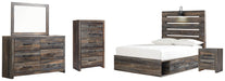 Drystan Full Panel Bed with 4 Storage Drawers with Mirrored Dresser, Chest and Nightstand