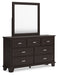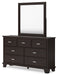 | Details | B441B8: Includes panel headboard, footboard, rails and slats, Made with hardwood solids, engineered wood veneer and MDF substrates, Dark brown finish, Floating panel headboard, Picture frame footboard, Foundation/box spring required, sold separately , Mattress available, sold separately, Assembly required, B441B1: Includes dresser and mirror, Made with hardwood solids, engineered wood veneer and MDF substrates, Dark brown finish, Metal bar pulls with bright nickel-tone finish, 7 smooth-gliding drawers with dovetail construction and metal center guides, Drawer interiors are lined with a wood grain laminate for a clean, finished look, Top moulding on dresser, Mirror attaches to back of dresser, B441-46: Made with hardwood solids, engineered wood veneer and MDF substrates, Dark brown finish, Metal bar pulls with bright nickel-tone finish, 5 smooth-gliding drawers with dovetail construction and metal center guides, Drawer interiors are lined with a wood grain laminate for a clean, finished look, Top moulding, B441-92: Made with hardwood solids, engineered wood veneer and MDF substrates, Dark brown finish, Metal bar pulls with bright nickel-tone finish, 2 smooth-gliding drawers with dovetail construction and metal center guides, Drawer interiors are lined with a wood grain laminate for a clean, finished look, Top moulding, | |