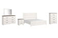 Details B1190B3: Includes headboard, footboard and rails, Made of engineered wood (MDF/particleboard) and decorative laminate, White rustic finish with replicated cedar grain, Foundation/box spring required, sold separately, Mattress not included, sold separately, Assembly required, Bed is compatible with an adjustable base, B1190B1: Includes dresser with mirror, Made of engineered wood (MDF/particleboard) and decorative laminate, White rustic finish with replicated cedar grain, Rustic gray planked replicated oak grain with authentic touch, 6 smooth-gliding drawers with faux linen lining, Large scale dark colored handles, Mirror attaches to back of dresser, Assembly required, B1190-44: Made of engineered wood (MDF/particleboard), and decorative laminate, White rustic finish with replicated cedar grain, Rustic gray planked replicated oak grain with authentic touch, 4 smooth-gliding drawers with faux linen lining, Large scale dark colored handles, Safety is a top priority, clothing storage units are designed to meet the most current standard for stability, ASTM F 2057 (ASTM International), Drawers extend out to accommodate maximum access to drawer interior while maintaining safety, Assembly required, B1190-92: Made of engineered wood (MDF/particleboard), White rustic finish with replicated cedar grain, Rustic gray planked replicated oak grain with authentic touch, 2 smooth-gliding drawers with faux linen lining, Large scale dark colored handles, Assembly required,