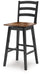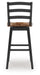 | Details | Made with solid wood frame, Seat with butcher block veneer pattern in deep brown wood-tone finish, Frame with warm satin black finish, Contoured seat, 360-degree swivel, Footrest for added support, Assembly required | |