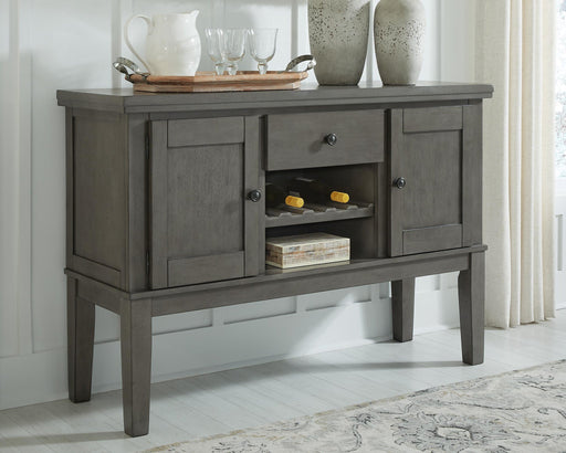 Signature Design by Ashley®Cool and on-trend. This versatile server sports an antiqued gray color for a contemporary-yet-casual feel. The server features two cabinets, a smoo...