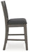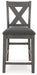 | Details | Includes counter height dining table and 6 counter height bar stools, Table made with hardwood solids, acacia veneer and MDF substrate, Stools made with solid hardwood frames, Antiqued gray wash finish, Polyester upholstery, Foam cushioned seats, Nailhead accents, Assembly required | |