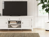 This TV stand is sure to impress when it’s time to relax after a tough day. With an antiqued white finish and wood grain texture, modern farmhouse-style design has never been so fashionable. Its cabinets and adjustable shelves are ideal for keeping all your equipment well organized and displaying your treasures. And that storage drawer is perfect for smaller accessories, bringing even more function to your entertainment space. All that’s missing is you.