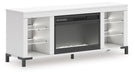 Level up your gaming experience and make movie nights to remember. This TV stand with electric fireplace extends your entertainment beyond the screen. Its built-in fireplace brings the heat, synchronizing with LED backlighting on the shelves. And you can customize the vibe with three trendy color options: blue, white and red. Modern function. Captivating, cool style. With this TV stand, revamp your home’s recreational hub like never before.