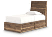 Nostalgic style, retooled for today’s trends. This twin panel bed with storage puts an elevated twist on mod aesthetics. Its warm brown tones reflect the mid-century vibes you love, while the simple panel design incorporates contemporary motifs. Ultra-spacious storage in the footboard keeps clutter out of sight. Integrated drawer handles round out the look in sleek style. With this bed, you can build your bedroom into a modern haven with a touch of retro-cool flair.