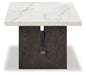 Dressed to thrill, this simply stunning coffee table offers a high-design look at a down-to-earth price. Ultra-sleek lines are accentuated with a dark waxy brown oak finish that’s so easy on the eyes. Clean-lined and modern, the plinth base and natural marble tabletop showcase quality craftsmanship and attention to detail. This table is the perfect centerpiece for a living room or family space, with a timeless look that's made to last.