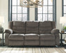 This reclining sofa puts the win in winning. Its waterfall back design and doubly plump pillow top arms team up with soft chenille fabric to go for the goal. Ample seating room makes the comfort possibilities endless. Sit back and relax. You won’t go wrong with this reclining sofa.