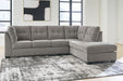 This sectional with chaise takes a homey approach to high style. Its denim-inspired fabric has classic versatility, while a contemporary silhouette and stitched details keep the look totally on trend. And you can count on comfort—the chaise invites you to kick back and stretch out.