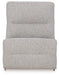 | Details | Includes 6 modular pieces: left-arm facing power recliner, power armless recliner, armless chair, console with storage, wedge and right-arm facing power recliner, "Left-arm" and "right-arm" describe the position of the arm when you face the piece, Versatile modular pieces fit together in a variety of configurations, One-touch power control with adjustable positions, Easy View™ adjustable headrest and zero-draw USB port; zero-draw technology only consumes power when the USB receptacle is in use, Easy View™ adjustable headrest puts your head and neck in optimum position for reading or watching TV even if you're fully reclined, Zero-gravity mechanism allows optimum reclining comfort with infinite reclining positions at the touch of a button, Corner-blocked frame with metal reinforced seat, Attached cushions; high-quality foam cushions wrapped in poly fiber, Accent pillows included; pillows with soft polyfill, Polyester upholstery, Next-Gen Nuvella™ is a performance fabric that is soft, easy to clean, stain-resistant and durable, Clean fabric with mild soap and water, let air dry; for stubborn stains, use a solution of 4 oz. bleach to 28 oz. water, Console with 2 cup holders and hidden storage; power cord included; UL Listed | |