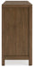This dresser sits comfortably at the intersection of modern lodge and farmhouse aesthetics. Your warm and welcoming disposition is reflected in the charming architectural elements and light brown glazed finish. Even with its poise, the dresser remains practical. Smooth-gliding drawers tuck away necessities, defining your bedroom with reliable function and style.