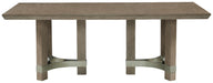 You want your dining room to reflect your refined sensibilities while remaining forward-thinking in design. The simple silhouette of this dining table opens the door to a dining room with the curated look and subtle flair you desire. The piece's elegant waxy gray finish gets an added touch of luxury with a double-pedestal base and beveled-edge top, showing remarkable attention to detail. Whether you're hosting family meals or holiday entertaining, this table is a place to gather around in streamlined style.
