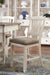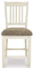 | Details | D647-32: Made of veneers, wood and engineered wood, Two-tone textural finish; antique white with weathered oak finished top, 4 drawers; 2 each on each side, Storage rack holds up to 7 wine bottles, Seats up to 6, Assembly required, D647-124: Made of solid wood, Antiqued white finish, Heavy woven fabric upholstered seat, Assembly required, | |