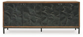 Revamp your home with this stylish accent cabinet. Featuring four doors with a captivating textured pattern, it instantly becomes the centerpiece of your room. The cabinet's interior shelves make it versatile for use as a buffet, console or media cabinet. It's a smart choice that elevates your home on multiple levels.