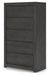 | Details | Made with engineered wood (MDF/particleboard/plywood) and decorative laminate for the right balance of affordability and durability, Dark charcoal finish over replicated oak grain, Decorative laminate replicates natural or man-made material surfaces with consistent color, pattern and texture, Recessed hand grabs create hardware-less effect, 5 smooth-gliding drawers, Drawer interiors are lined with a faux linen laminate for a clean, finished look, Safety is a top priority, clothing storage units are designed to meet the most current standard for stability, ASTM F 2057 (ASTM International), Drawers extend out to accommodate maximum access to drawer interior while maintaining safety, Assembly required | |