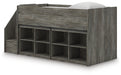 | Details | Includes loft bed, left storage steps with loft ends, roll slats and 2 loft bookcases, Made with engineered wood (MDF/particleboard/plywood) and decorative laminate for the right balance of affordability and durability, Rustic warm gray finish over replicated oak grain with authentic touch, Decorative laminate replicates natural or man-made material surfaces with consistent color, pattern and texture, 8 storage cubbies, Bed does not require additional foundation/box spring, Mattress available, sold separately, Assembly required | |