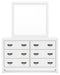 | Details | B427B4: Includes full panel headboard, footboard, rails and slats, Made with hardwood solids, okoume veneer and MDF substrates, White finish, Foundation/box spring required, sold separately, Mattress available, sold separately, Assembly required, B427B1: Includes dresser and mirror, Made with hardwood solids, okoume veneer and MDF substrates, White finish, 6 drawers with dovetail construction and metal center guides, Hardware with dark finish, Drawer interiors are lined with a wood grain laminate for a clean, finished look, Mirror attaches to back of dresser, B427-46: Made with hardwood solids, okoume veneer and MDF substrates, White finish, 5 drawers with dovetail construction and metal center guides, Hardware with dark finish, Drawer interiors are lined with a wood grain laminate for a clean, finished look, B427-92: Made with hardwood solids, okoume veneer and MDF substrates, White finish, 2 drawers with dovetail construction and metal center guides, Hardware with dark finish, Drawer interiors are lined with a clean wood grain laminate for a clean, finished look, | |