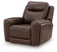 Commanding in presence yet tailored in detail, this power recliner brings a refined lounge experience to your living space. Supple top grain leather and expertly matched faux leather, accented with jumbo stitching and contrast welting, create a richly layered look that feels custom-made. Power reclining, adjustable headrests and lumbar support turn this recliner into a personalized escape. And built-in USB charging keeps essentials close by. It's a perfectly curated balance of form and function.