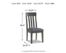 | Details | Made with solid wood, Antiqued gray finish, Upholstered in gray textural polyester fabric, Cushioned foam seat, Contoured comb-back design, Assembly required | |