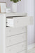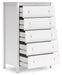 Details Made with engineered wood (MDF/particleboard/plywood) and decorative laminate for the right balance of affordability and durability, Decorative laminate replicates natural or man-made material surfaces with consistent color, pattern and texture, Matte white finish, 5 smooth-gliding drawers with vinyl-wrapped sides and back for durability, Safety is a top priority, clothing storage units are designed to meet the most current standard for stability, ASTM F 2057 (ASTM International), Drawers extend out to accommodate maximum access to drawer interior while maintaining safety, Assembly required