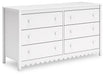Thanks to its playful scalloped design, this dresser is the perfect fit for cottage or coastal farmhouse interiors. The matte white finish serves as the perfect backdrop to showcase your personal taste and creativity. And its spacious drawers let you say goodbye to clutter and hello to well-organized whimsy.
