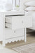 | Details | Made with engineered wood (MDF/particleboard/plywood) and decorative laminate for the right balance of affordability and durability, Decorative laminate replicates natural or man-made material surfaces with consistent color, pattern and texture, Matte white finish, 2 smooth-gliding drawers with vinyl-wrapped sides and back for durability, Assembly required | |