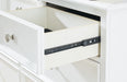 Details B680B4: Includes king panel headboard, footboard and rails, Made with hardwood solids and MDF substrate, White painted finish, Tapered feet, Foundation/box spring required, sold separately, Mattress available, sold separately, Assembly required, Bed is compatible with an adjustable base, B680B1: Includes dresser and mirror, Made with hardwood solids and MDF substrate, White painted finish, 7 smooth-gliding drawers with dovetail construction and ball-bearing side glides, Round metal drawer knobs with satin nickel-tone finish, Tapered feet, Mirror attaches to back of dresser, Assembly required, B680-92: Made with hardwood solids and MDF substrate, White painted finish, Round metal drawer knobs with satin nickel-tone finish, Tapered feet, Framed drawer fronts, 2 smooth-gliding drawers with dovetail construction and ball-bearing side glides,
