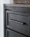 | Details | B989B4: Includes king panel headboard, storage footboard and rails with roll slats, Made with hardwood solids, select oak veneers and engineered wood, Two-tone finish (brushed black and dusty grayish brown wood tone), Headboard with picture frame moulding, Footboard with two deep drawers, Smooth-gliding soft-close drawers with fully finished interiors and dovetail construction, Sleek drawer pulls with black finish, Bed does not require additional foundation/box spring; accommodates most zero clearance adjustable bases with the addition of a bunkie board, Mattress available, sold separately, Assembly required, B989B1: Includes dresser and mirror, Made with hardwood solids, select oak veneers and engineered wood, Two-tone finish (brushed black and dusty grayish brown wood tone), Sleek drawer pulls with black finish, 11 soft-close, smooth-gliding drawers with fully finished interiors and dovetail construction (top drawers felt lined), 5 drawers with brushed black finish; 6 drawers with grayish brown wood tone, 3 drawers located behind each door, Mirror mounts to back of dresser, Assembly required, B989-48: Made with hardwood solids, select oak veneers and engineered wood, Two-tone finish (brushed black and dusty grayish brown wood tone), Sleek drawer pulls with black finish, 5 soft-close, smooth-gliding drawers with fully finished interiors and dovetail construction (top drawers felt lined), 3 pull-out trays (felt lined) and 2 adjustable shelves behind door, B989-92: Made with hardwood solids, select oak veneers and engineered wood, Two-tone finish (brushed black and dusty grayish brown wood tone), Sleek drawer pulls with black finish, 2 soft-close, smooth-gliding drawers with fully finished interiors and dovetail construction, 110V power supply with dual USB charging port, Power cord included; UL listed, | |