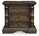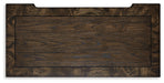 Details B947B4: Includes upholstered panel headboard, upholstered panel footboard and panel rails, Made with hardwood solids, oak and ash swirl veneers, MDF substrates and cast resin components, Dark brown finish, Polyester upholstery with button tufting, Foundation/box spring required, sold separately, Mattress available, sold separately, Assembly required, B947B1: Includes dresser and mirror, Made with hardwood solids, oak and ash swirl veneers, MDF substrates and cast resin components, Dark brown finish, 6 smooth-gliding drawers with dovetail construction (top drawer felt lined), Drawer pulls with antiqued goldtone finish, Mirror attaches to back of dresser, B947-46: Made with hardwood solids, oak and ash swirl veneers, MDF substrates and cast resin components, Dark brown finish, 5 smooth-gliding drawers with dovetail construction (top drawer felt lined), Drawer pulls with antiqued goldtone finish, B947-93: Made with hardwood solids, oak and ash swirl veneers, MDF substrates and cast resin components, Dark brown finish, 2 smooth-gliding drawers with dovetail construction (top drawer felt lined), Pull-out tray behind bottom drawer, Drawer pulls with antiqued goldtone finish, 110V power supply with dual USB charging ports, Power cord included; UL Listed,