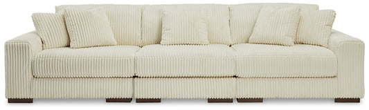 Plush and posh. Showcase your eye for on-trend texture with the statement-making cord upholstery of this sectional with double chaise. Its stunningly soft fabric entices in an ivory hue, complementing contemporary color palettes. Sink into the cushions and plan to stay a while—this cozy living room centerpiece highlights your high-end approach to comfort and style.