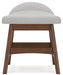| Details | Made with solid hardwood frame, Medium brown natural wood-tone finish, Polyester upholstery, Foam cushion | |