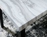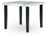 | Details | Made with solid wood legs, Two-tone finish (matte black wood grain laminate and faux gray marble laminate tabletop), Decorative laminate replicates natural or man-made material surfaces with consistent color, pattern and texture, Tapered leg design, Seats up to 4, Bar stools sold separately, Assembly required | |