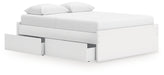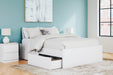 Details Includes platform bed panels, platform rails, roll slats and 2 side storage drawers, Made with engineered wood (MDF/particleboard/plywood) and decorative laminate for the right balance of affordability and durability, Solid white finish, Decorative laminate replicates natural or man-made material surfaces with consistent color, pattern and texture, 2 smooth-gliding storage drawers with ball-bearing side glides; vinyl-wrapped sides and back for durability, Bed does not require additional foundation/box spring; accommodates most zero clearance adjustable bases with the addition of a bunkie board, Mattress available, sold separately, Assembly required