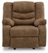Affordable luxury made easy. This recliner is an essential for living room lounging. Its warm brown faux leather is well-suited to mix and match with your existing pieces. Pull tab reclining keeps you covered when it comes to comfort. And this functional piece is equally as fashionable, with design details like a channel-stitched back incorporating subtle visual interest.