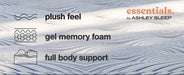 Details Comfort level: medium, Flame-retardant polyester comfort fiber, Luxury loft fiber, High-density plush quilt foam for support and comfort; high-density comfort foam, High-density gel memory foam for lumbar support; base support foam for added stability, Power-packed wrapped coil unit with Ashley Edge to minimize motion transfer and increase support, Hyper Cool luxury 4-way stretch knit cover for uniform comfort and durability, Adjustable base compatible, 10-year non-prorated warranty, Note: Purchasing mattress and foundation from two different brands may void warranty; check warranty for details, Foundation/box spring sold separately, Mattress ships in a box; please allow 48 hours for your mattress to fully expand after opening, State recycling fee may apply
