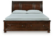 | Details | Includes sleigh headboard, sleigh rails and storage footboard, Made with veneers, wood and engineered wood, Hand-finished, Dark bronze-tone hardware, 2 smooth-operating drawers with dovetail construction and cedar bottoms, Footboard with bun feet, Bed does not require additional foundation/box spring; accommodates most zero clearance adjustable bases, Mattress available, sold separately, Assembly required | |