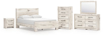 Details B2310B2: Includes panel headboard, footboard and rails, Made with engineered wood (MDF/particleboard/plywood) and decorative laminate for the right balance of affordability and durability, Rustic white finish over replicated reclaimed oak grain with authentic touch, Decorative laminate replicates natural or man-made material surfaces with consistent color, pattern and texture, Foundation/box spring required, sold separately , Mattress available, sold separately, Minor assembly required, B2310B1: Made with engineered wood (MDF/particleboard/plywood) and decorative laminate for the right balance of affordability and durability, Rustic white finish over replicated reclaimed oak grain with authentic touch, Decorative laminate replicates natural or man-made material surfaces with consistent color, pattern and texture, Handles with dark pewter-tone finish, 6 smooth-gliding drawers, Drawer interiors are lined with a faux linen laminate for a clean, finished look, Framed front and pilasters, Safety is a top priority, clothing storage units are designed to meet the most current standard for stability, ASTM F 2057 (ASTM International), Drawers extend out to accommodate maximum access to drawer interior while maintaining safety, Mirror attaches to back of dresser; can also be mounted on wall horizontally or vertically , Minor assembly required, B2310-46: Made with engineered wood (MDF/particleboard/plywood) and decorative laminate for the right balance of affordability and durability, Rustic white finish over replicated reclaimed oak grain with authentic touch, Decorative laminate replicates natural or man-made material surfaces with consistent color, pattern and texture, Handles with dark pewter-tone finish, 5 smooth-gliding drawers, Drawer interiors are lined with a faux linen laminate for a clean, finished look, Framed front and pilasters, Safety is a top priority, clothing storage units are designed to meet the most current standard for stability, ASTM F 2057 (ASTM International), Drawers extend out to accommodate maximum access to drawer interior while maintaining safety, Minor assembly required, B2310-92: Made with engineered wood (MDF/particleboard/plywood) and decorative laminate for the right balance of affordability and durability, Rustic white finish over replicated reclaimed oak grain with authentic touch, Decorative laminate replicates natural or man-made material surfaces with consistent color, pattern and texture, Handles with dark pewter-tone finish, 2 smooth-gliding drawers, Drawer interiors are lined with a faux linen laminate for a clean, finished look, Framed front and pilasters, 2 slim-profile USB charging ports, Power cord included; UL Listed, Minor assembly required,