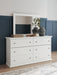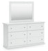 Details B139B43: Includes panel headboard/footboard and rails, Made with engineered wood (MDF/particleboard/plywood) and decorative laminate for the right balance of affordability and durability, Replicated solid white paint, Decorative laminate replicates natural or man-made material surfaces with consistent color, pattern and texture, Foundation/box spring required, sold separately, Mattress available, sold separately, Assembly required, B139B40: Includes dresser and mirror, Made of engineered wood (MDF/particleboard), Knobs with pewter-tone finish, Scalloped moulding, 6 smooth-operating drawers, Includes tipover restraint device, Mirror attaches to back of dresser; can also be mounted on wall horizontally or vertically, Safety is a top priority, clothing storage units are designed to meet the most current standard for stability, ASTM F 2057 (ASTM International), Drawers extend out to accommodate maximum access to drawer interior while maintaining safety, B139-46: Made of engineered wood (MDF/particleboard), Pewter-tone knobs, Scalloped moulding, 5 smooth-operating drawers, Small Space Solution, Includes tipover restraint device, Safety is a top priority, clothing storage units are designed to meet the most current standard for stability, ASTM F 2057 (ASTM International), Drawers extend out to accommodate maximum access to drawer interior while maintaining safety, B139-91: Made of engineered wood (MDF/particleboard), Pewter-tone knobs, 1 smooth-operating drawer, 1 storage cubby, Scalloped moulding, Small Space Solution,