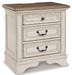 | Details | B743-46: Made of veneers, wood and engineered wood, with cast resin components, Antiqued two-tone finish, Dark bronze-tone finished metal hardware, 5 smooth-gliding drawers with dovetail construction, Includes tipover restraint device, Small Space Solution, Includes tipover restraint device, B743-93: Made of veneers, wood and engineered wood, with cast resin components, Antiqued two-tone finish, 3 smooth-gliding drawers with dovetail construction, Dark bronze-tone finished metal hardware, 2 electrical outlets and USB charging ports, Power cord included; UL Listed, Small Space Solution, B743B1: Made of veneers, wood and engineered wood, with cast resin components, Antiqued two-tone finish, 7 smooth-gliding drawers with dovetail construction, Dark bronze-tone hardware, Mirror attaches to back of dresser, Assembly required, Includes tipover restraint device, B743B4: Made of wood and engineered wood, with cast resin components, Includes headboard, footboard and rails, Distressed, chipped white finish, Polyester upholstery with foam cushioned and button tufting, Foundation/box spring required, sold separately, Mattress available, sold separately, Assembly required, Bed is compatible with an adjustable base, | |