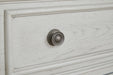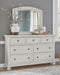 | Details | Includes dresser and mirror, Made with select oak veneer, engineered wood, solid wood components and cast resin components, Antiqued white finish with grain texture, 7 smooth-gliding drawers with dovetail construction and metal ball bearing side glides (pull-out tray and top drawers felt lined), Dark bronze-tone knobs, Mirror attaches to back of dresser, Assembly required | |