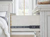 Elegant, timeless furnishings take your bedroom to the next level. Nothing does that better than this dresser with mirror. The antiqued white finish with a wonderful grain texture radiates sophistication, while the dark bronze-tone hardware adds an ornate touch. A hidden pull-out tray behind the top middle drawer puts your small valuables out of sight. Felt-finished top drawers round out the piece for the ultimate tasteful bedroom.