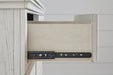 | Details | Made with wood, select oak veneer and engineered wood, Antiqued white finish with grain texture, Smooth-gliding drawer with dovetail construction and metal ball-bearing side glides, Dark bronze-tone knob, Open bookcase cubby, Cutout for cord management | |