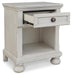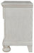 Elegant, timeless furnishings take your bedroom to the next level. Nothing does that better than this nightstand. The antiqued white finish with a wonderful grain texture radiates sophistication, while a dark bronze-tone knob adds an ornate touch. A single drawer and open bookcase cubby allow for versatile storage or display options, making this nightstand a functional favorite.