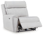 | Details | Includes 5 modular pieces: left-arm facing power recliner, armless chair, 2 consoles with storage and right-arm facing power recliner , "Left-arm" and "right-arm" describe the position of the arm when you face the piece, Versatile modular pieces fit together in a variety of configurations, One-touch power control with adjustable positions, Easy View™ adjustable headrest and zero-draw USB port, Zero-draw technology only consumes power when the USB receptacle is in use, Zero-gravity mechanism allows optimum reclining comfort with infinite reclining positions at the touch of a button, Corner-blocked frame with metal reinforced seat, Attached cushions, High-quality foam cushions wrapped in poly fiber, Polyester upholstery, Console with 2 cup holders and hidden storage , Power cord included; UL Listed | |