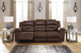 For those who love the cool look of leather but long for the warm feel of fabric, this reclining sofa delivers both with ease. Its high-performance padded faux leather is remarkably durable and easy to clean, making it just the thing for family spaces. Channel-stitched back cushions provide indulgent lumbar support for maximum comfort—not to mention fashion-forward flair.
