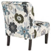 This fashion-forward accent chair adds a cool vibe to your home. Armless design is perfect for small spaces that need a spark of color. The ivory, blue, charcoal and brown floral-patterned upholstery will brighten your space and bring in an element of comfort.